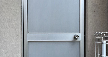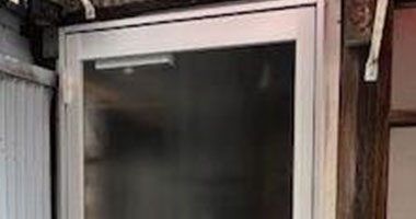 鉄製でかなり重いドアのヒンジが壊れていて、今にも倒れてきそうでした。アルミ製のドアへリフォームをして、開閉もスムーズになりました。