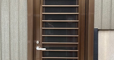 老朽化で傾いた勝手口ドアを取替し、防犯性・採風性・開閉の快適さを向上させました。オータムブラウン色は、落ち着きと温かみを兼ね備えた深みのあるブラウンカラーで木目調や自然素材との相性が良くこちらのカラーで提案しました。