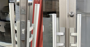 既存枠はそのまま活かし、LIXIL ADドアの本体のみ取替を行いました。現行デザインのドアを採用し、ドア本体だけでなく、ハンドルや錠前などの金物もすべて新しいものへ取替しています。