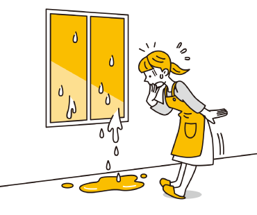 水滴により結露している窓廻りの壁や壁紙・カーテンやサッシなどの湿度が上がり、カビやダニなどが発生する原因になります。